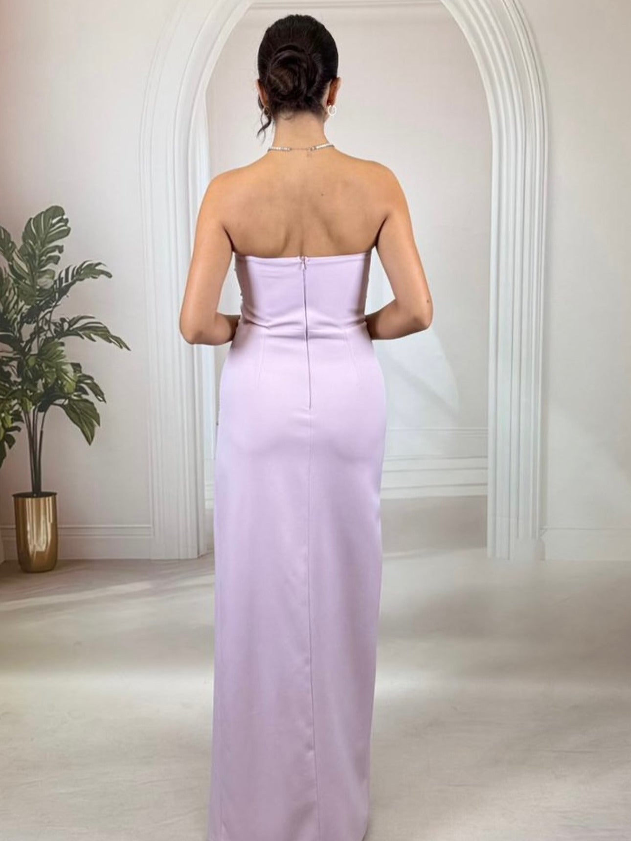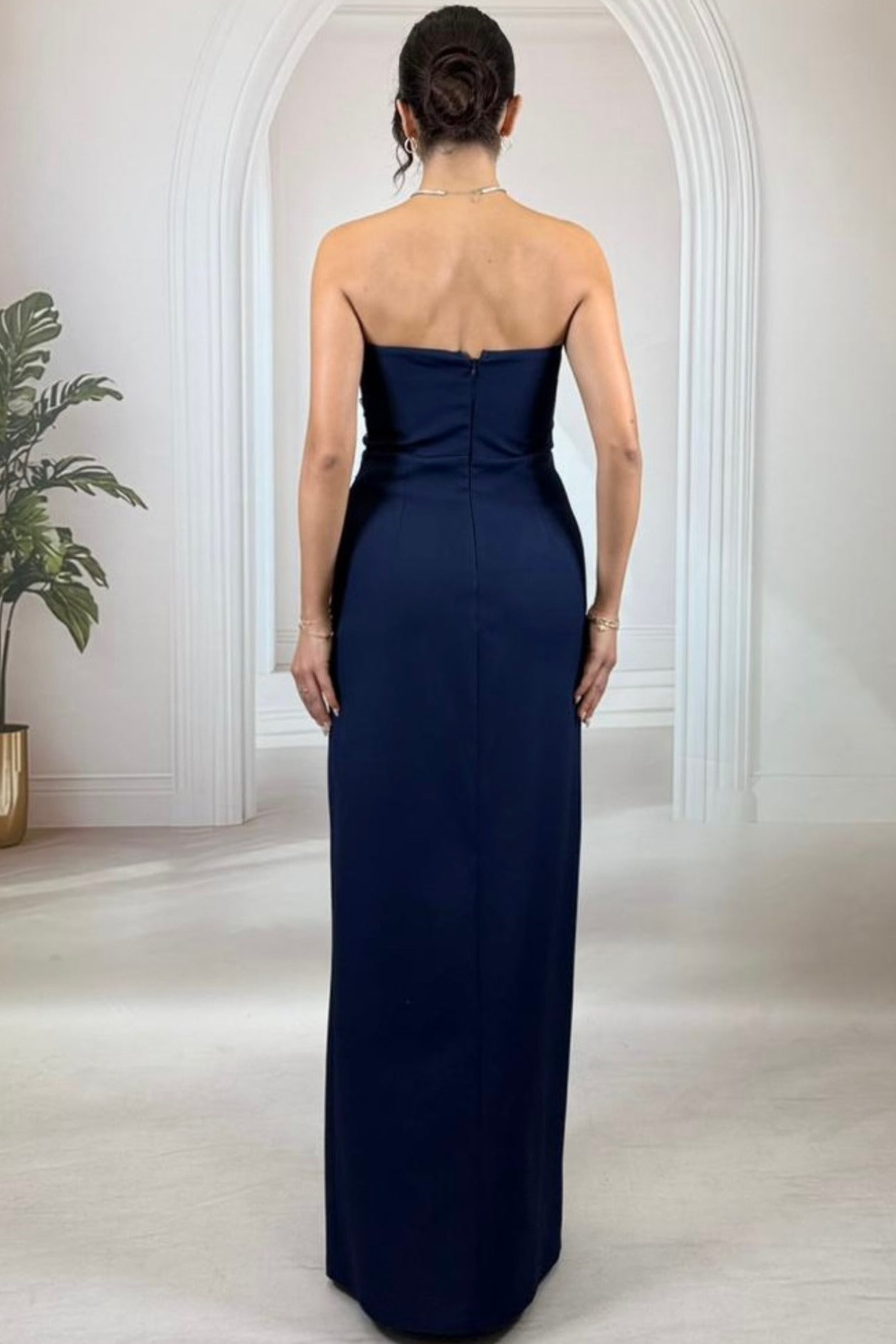Tasarım: Omuzları ve dekolteyi zarifçe vurgulayan straplez (omuzsuz) kesim.