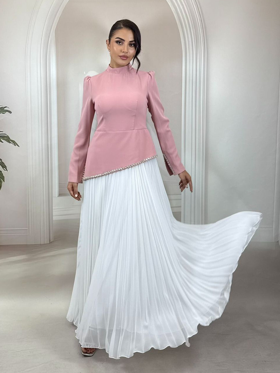 Asimetrik Kesim: Modern ve dinamik bir görünüm sağlayan, vücut hatlarını zarifçe vurgulayan peplum form.